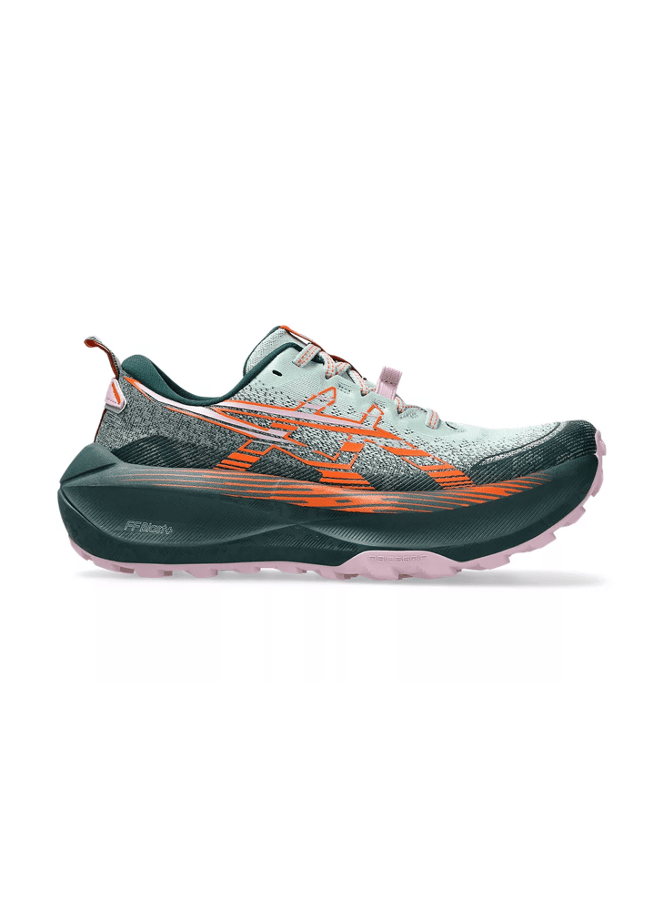 De buitenzool is voorzien van ASICSGRIP™, een geavanceerde rubberen samenstelling met diepe, multidirectionele noppen die uitzonderlijke grip bieden op natte rotsen, modderige paden en losse ondergrond. De geïntegreerde rock protection plate beschermt de voet tegen scherpe elementen op het pad, terwijl de zool flexibel genoeg blijft voor natuurlijke beweging.